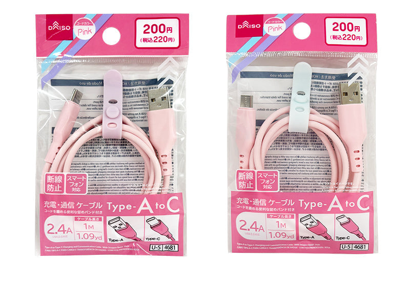 ●コードを纏める便利な留めバンド付き。 ●2.4A 充電・データ-通信。 ●ケーブル長さ:1m。 ●USB2.0対応。●Type-Cコネクタを充電、通信する機器に接続します。 ●使用後は端子を持って、本品を機器から取り外してください。●使用する前に、必ず読んで、安全に正しく使用してください。 ●急速充電器には使用しないでください。 ●コードバンドは強く引っ張らないでください。 ●2.4Aを超える機器には使用できません。 ●コネクターは接続方向を確認して、まっすぐ差し込んでください。 ●一度曲がってしまった充電用コネクターは絶対に使用しないでください。 ●コネクター内部に液体や異物が入らないように注意してください。 ●機器の仕様や環境によっては正常に作動しない場合があります。ご了承ください。●濡れた手で使用しないでください。●変形・破損した場合、直ちに使用を中止してください。●乳幼児の手の届かない場所で使用・保管してください。●直射日光・高温の場所を避けて、使用・保管してください。●本来の用途以外に使用しないでください。●本品の性質上、完全なデータ送信を保証することはできません。本品の使用においてデータの破壊または消失が発生した場合、原因や損害の内容に関わらず、当社は一切責任を負いません。事前にデータをバックアップすることをお勧め致します。