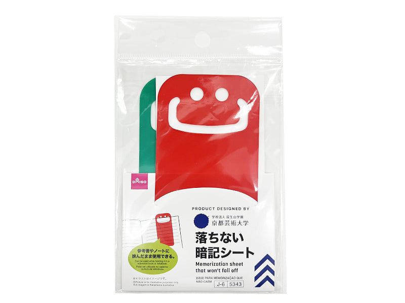 マーカーを引いた箇所に違う色の暗記シートをかぶせると文字が隠れる。参考書やノートに挟んだまま使用できる。●イラストはイメージです。マーカーを引いた箇所に違う色の暗記シートをかぶせると文字が隠れる。緑のシートには赤のマーカー赤のシートには緑のマーカー●直射日光の当たる場所を避けて、保管してください。●お子様の手の届かない場所に保管してください。使用する筆記具、印刷、紙質によっては文字が隠れにくい場合があります。●長期間他の製品と密着させないでください。可塑剤の影響で変質、色移りの恐れがあります。●火や熱源のそばに置かないでください。●本来の用途以外に使用しないでください。