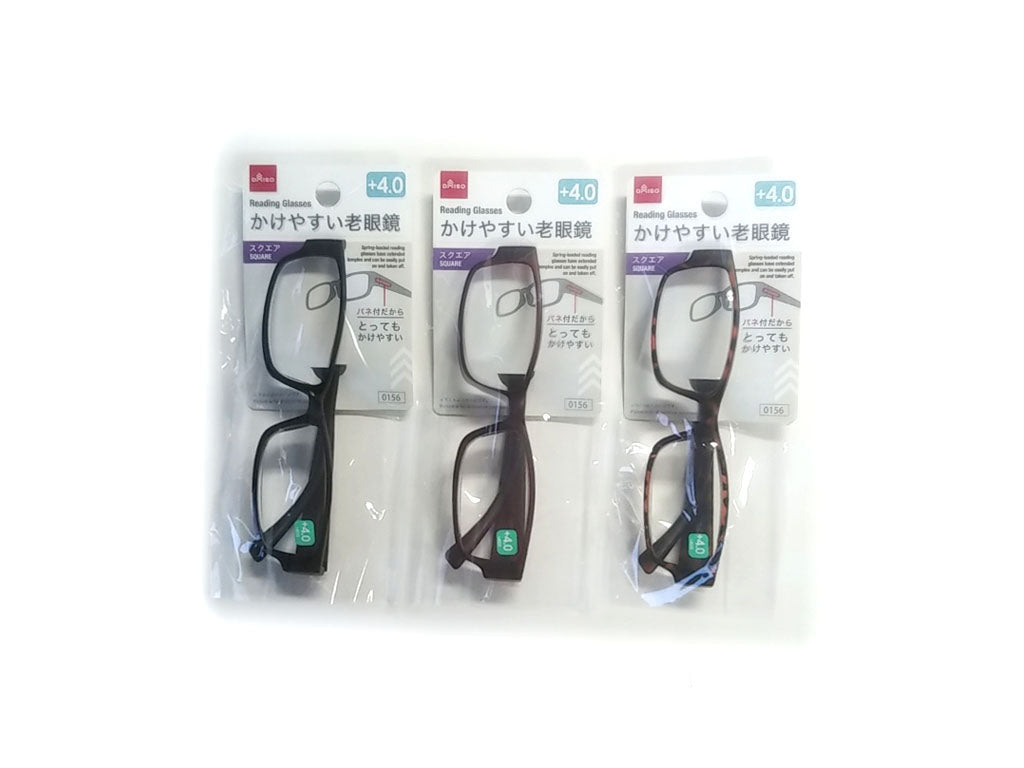 バネ付き老眼鏡はテンプルが広がり、楽に掛け外しができます。