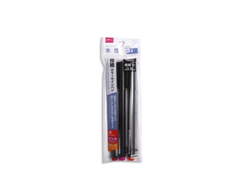 裏写りしない水性インク 細かい字も書き易い極細タイプ筆記水性インク インク色:赤 インク色:ピンク インク色:オレンジ ペン先:極細 約0.5mm ペン先を閉めて保管してください。●直射日光・高温多湿の場所を避けて、保管してください。●乳幼児の手の届かない場所に保管してください。●携帯する時はペン先を収納してください。●インクが衣服などに付くと落ちない場合あり●ペン先を上向きにして使用しない●激しく振ったり落とさない●変形・破損時は使用中止●火や熱源のそばに置かない●用途外に使用しない