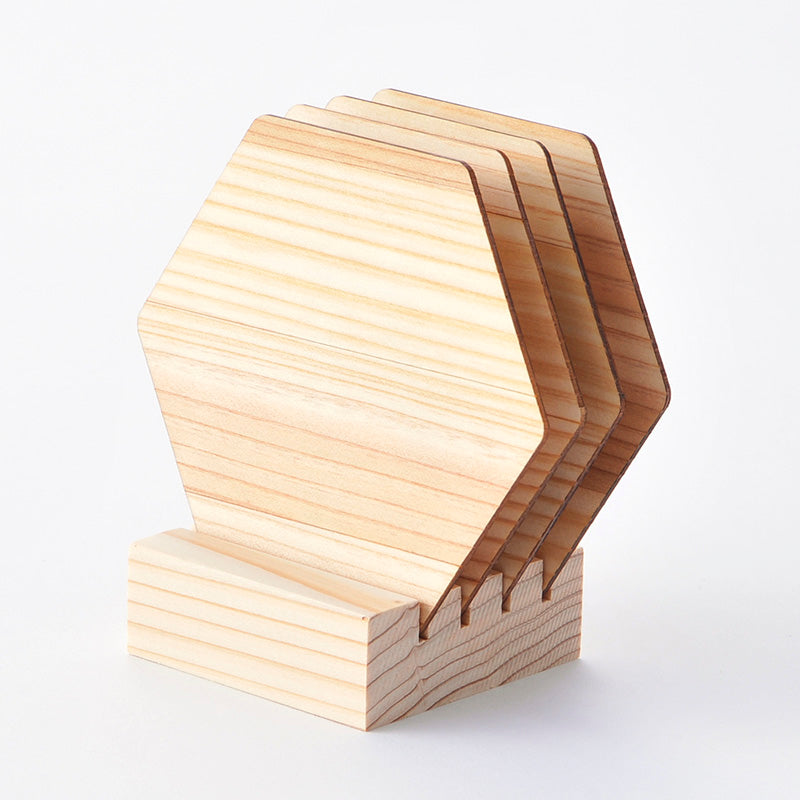 スタンド付きのコースター4枚セットです。●お子様の手の届かない場所に保管してください。●直射日光・高温多湿の場所を避けて、保管してください。●側面はレーザー加工による焦げ目です。 ●木材から油分が浮き出る場合があります。気になる場合は、お湯またはアルコールで拭き取ってください。●水濡れ、摩擦などにより色落ち、色移りする場合があります。●食器洗い機・食器乾燥機は使用しないでください。●電子レンジは使用しないでください。●水の中に放置しないでください。●天然素材のため、色むら、フシ、ささくれがある場合があります。●変形・破損した場合、直ちに使用を中止してください。●火や熱源のそばに置かないでください。●本来の用途以外に使用しないでください。