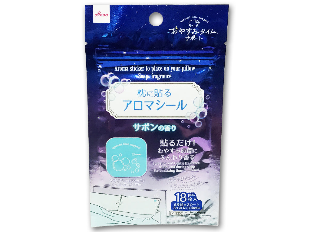 おやすみサポート サボンの香り 貼るだけ!おやすみ時間にふんわり香る 実寸 こころほぐれるリラックスタイムに 18枚入 6枚組×3シート●イラストはイメージです。枕に貼るだけ簡単アロマシールです。 就寝時に枕に貼るとアロマの香りでリラックスできるシールです。 石けんをイメージした爽やかなフローラルの香り 絵柄は2種類シールをはがして枕やシーツなど、就寝時に香りを感じやすい所に貼り付けてください。 芳香持続時間の目安は約7時間です。(使用方法や使用環境により異なります)●直射日光・高温多湿の場所を避けて、保管してください。肌に直接貼らないでください。 妊産婦、乳幼児へのご使用はおすすめしておりません。 開封後はチャックをしっかりと閉じ、1か月を目安に使い切ってください。 未開封のまま長期間保管した場合、香りが劣化する場合があります。 肌に直接あたりそうな所には貼らないでください。 アレルギー症状やかぶれを起こしやすい体質の人は、注意して使用してください。 生地などの材質によっては、のり残りや生地を傷める場合があります。 長時間貼り付けたままにしないでください。 シールを貼ったまま洗濯しないでください。 貼り付ける場所に香りが移ります。あらかじめご了承ください。 剥離紙に香料の染み出しが見られることがあります。 使用場所の素材により、まれに香料が染み出すことがあります。●食品ではない、口に入れないで!●子どもやペットのいる場所で使用・保管しない●刺激・異常を感じたらただちに使用を中止、医師に相談●目立たない部分で試してから使用●火や熱源のそばに置かない●用途外に使用しない