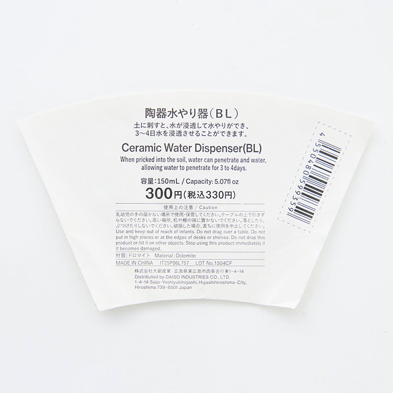 容量:150mL土に刺すと、水が浸透して水やりができ、3〜4日水を浸透させることができます。●乳幼児の手の届かない場所で使用・保管してください。●テーブルの上で引きずらないでください。●高い場所、机や棚の端に置かないでください。●落としたり、ぶつけたりしないでください。●破損した場合、直ちに使用を中止してください。