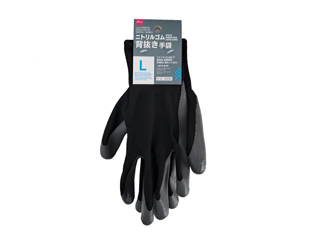 ニトリルゴム加工で耐油性、耐摩耗性、防滑性に優れています。一般作業、重作業 ニトリルゴム加工で耐油性、耐摩耗性、防滑性に優れています。 全長:23.5cm 手のひら周り:19.0cm 中指の長さ:8.5cm手にはめてお使いください●使用後は水洗いしてください。●陰干ししてください。●塩素系洗剤・漂白剤は、使用しないでください。●直射日光の当たる場所を避けて、保管してください。●肌に異常がある場合は、使用しないでください。●肌に異常を感じた場合は、直ちに使用を中止してください。●ボール盤や面取り盤など回転部分を伴う機械での作業に使用しないでください。●電気作業に使用しないでください。●高温のものに触れないでください。●火や熱源のそばに置かないでください。●薬品、溶剤、油類を扱う作業に使用しないでください。