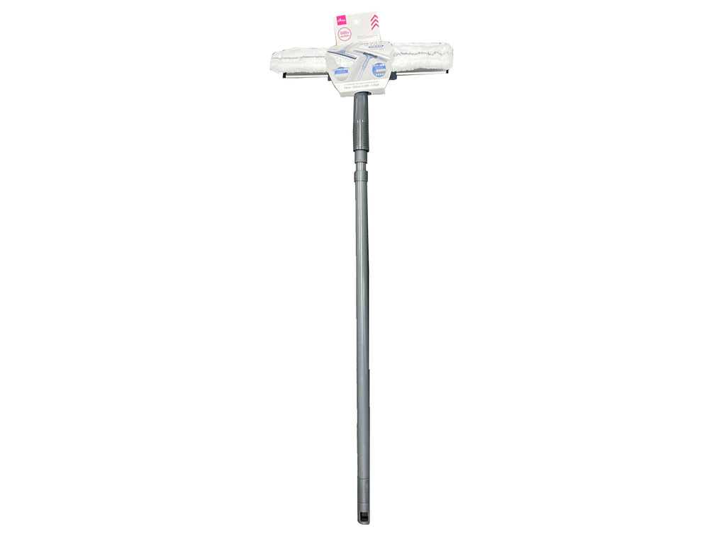 モップクロス:水拭きワイパー:水切り窓の掃除が簡単にモップクロスを取り外して洗える※ヘッド部分の取り外しはできません。長さ調節できるポールの長さ(約)79cm 130cm<ポールの伸ばし方>●ポールを矢印Aの方向に回すと伸びます。●矢印Bの方向に回すと締まります。※しっかり締まっているか確認後、使用してください。※使用中に緩んだ場合は再度締め直してください。※強く締めすぎると外れにくくなることがあります。<ワイパーを使用する場合>●水切りごとにワイパーについた汚れを拭き取ってください。●ワイパーや使用面にゴミなどの異物が付着したまま使用すると使用面をキズつける場合があります。※無理に動かさないでください。●モップ表面の比較的大きなホコリ等は直接取り除いてください。●他の製品と一緒に洗濯しないでください。●手洗いしてください。●漂白剤は使用しないでください。●タンブラー乾燥はしないでください。●陰干ししてください。●洗濯液や水に浸け置きしないでください。●ねじり絞りはしないでください。●毛が抜けることがあります。●直射日光・高温多湿の場所を避けて、保管してください。●本品は室内清掃用です。●車のボディや貴重品に使用しないでください。●使用の際には製品に破損などがないか、ポールやモップがしっかり固定されているかを確認してから使用してください。●金属やガラスの破片等の清掃に使用しないでください。●ザラザラした面や、とがった面には使用しないでください。毛がひっかかったり抜けたりする場合があります。●固いゴミが付着した場合は取り除いてから使用してください。●油などの清掃には使用しないでください。●使用の際には、過度な力をかけないでください。道具が破損する恐れがあります。 ●モップが入らない隙間には、無理に押し込まないでください。●可動部分に指や髪の毛などを挟んだりしないよう、注意してください。●落としたり、ぶつけたりしないでください。●投げたり、振り回したりしないでください。●分解や改造をしないでください。●変形・破損した場合、直ちに使用を中止してください。●乳幼児の手の届かない場所で使用・保管してください。●火や熱源のそばに置かないでください。●本来の用途以外に使用しないでください。