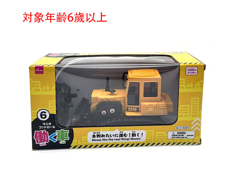 本物みたいに進む!動く!対象年齢6才以上使用電池:本体:単三形乾電池×3個 4.5V 0.07-0.51A コントローラー:単三形乾電池×2個 3V 0.02A 周波数:27MHz●電池は別売りです。電池の入れ方 本体 1.本体裏の電池ボックスをプラスドライバーではずし、カバーを開けます。 2.電池を入れます。 3.電池ボックスカバーを元に戻し、ネジで留めます。 コントローラー 1.コントローラー裏の電池ボックスをプラスドライバーではずし、カバーを下にスライドして開けます。 2.電池を入れます。 3.電池ボックスカバーを元に戻し、ネジで留めます。 遊び方 本体のスイッチをONにします。 コントローラーを操作すると本体が走ります。 コントローラーの操作方法 Aレバー:上=前進・下=反時計回りにに後退 Bレバー:ブレード上昇・下降 ●直射日光・高温多湿の場所を避けて、保管してください。●お子様の手の届かない場所に保管してください。人や車が横切るような場所、人が密集している場所、道路など危険な場所で使用しないでください。 遊んだ後は必ずスイッチを切り電池をはずしてください。 使用中、タイヤに指・髪の毛・衣服等巻き込まないよう注意してください。 屋内で遊ぶ場合、家具やガラス等破損しないよう注意してください。 同じ周波数のラジオコントロール製品が近くで同時に使用されていると誤動作の原因になります。●保護者の方へ、必ずお読みください。●小部品があります。誤飲・窒息の危険がありますので、3才未満のお子様へは絶対に与えないでください。●本品を使用する際は、保護者監督のもと使用してください。●周囲の安全を確認した上で使用してください。●分解や改造をしないでください。●濡れた場所で使用しないでください。●濡れた手で使用しないでください。●電池はプラスマイナスを正しくセットしてください。●新しい電池と古い電池、種類の違う電池を混ぜて使用しないでください。●二次電池(充電式電池)は、絶対に使用しないでください。●落としたり、ぶつけたりしないでください。●変形・破損した場合、直ちに使用を中止してください。●火や熱源のそばに置かないでください。