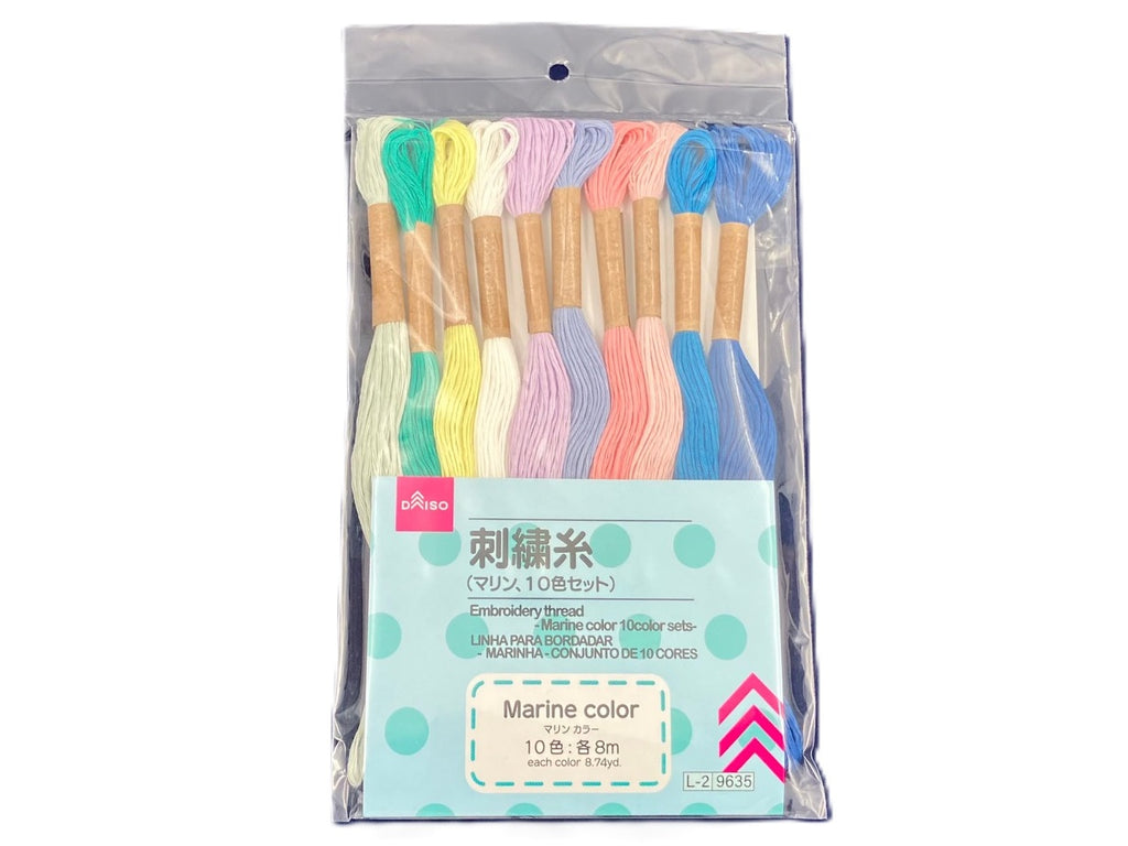 刺繍糸10色セット:6本撚り糸、各色8m タペストリーやハンカチ等の刺繍に最適。ミサンガ等のハンドメイドにも。●直射日光・高温多湿を避け使用・保管●子どもの手の届かない場所で使用・保管●用途外に使用しない●火や熱源のそばに置かない