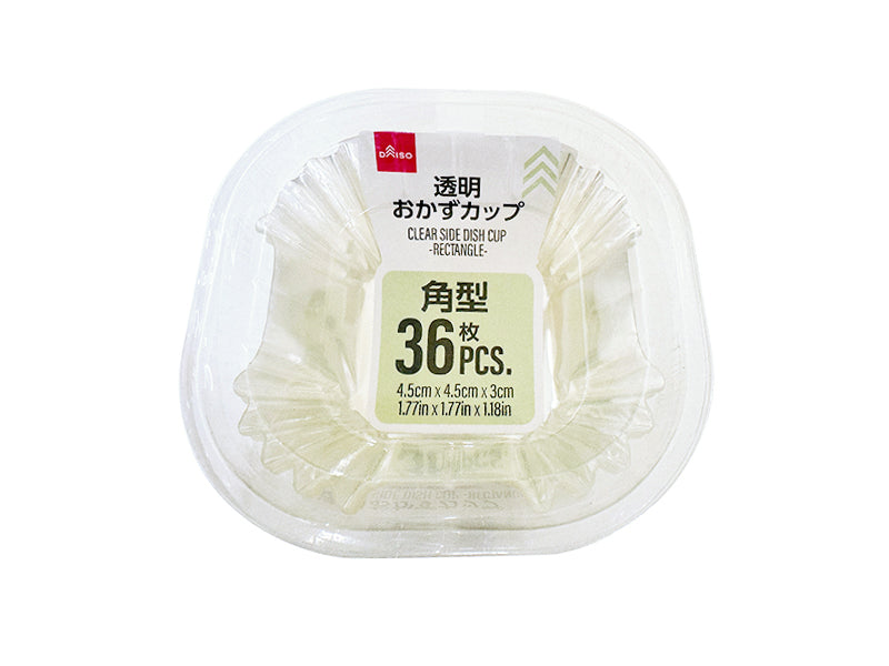 透明おかずカップ(角型)●耐熱温度:80℃●オーブン・オーブントースター・電子レンジは使用しないでください。●冷凍庫で使用しないでください。●お子様の手の届かない場所で使用・保管してください。●火や熱源のそばに置かないでください。●本来の用途以外に使用しないでください。
