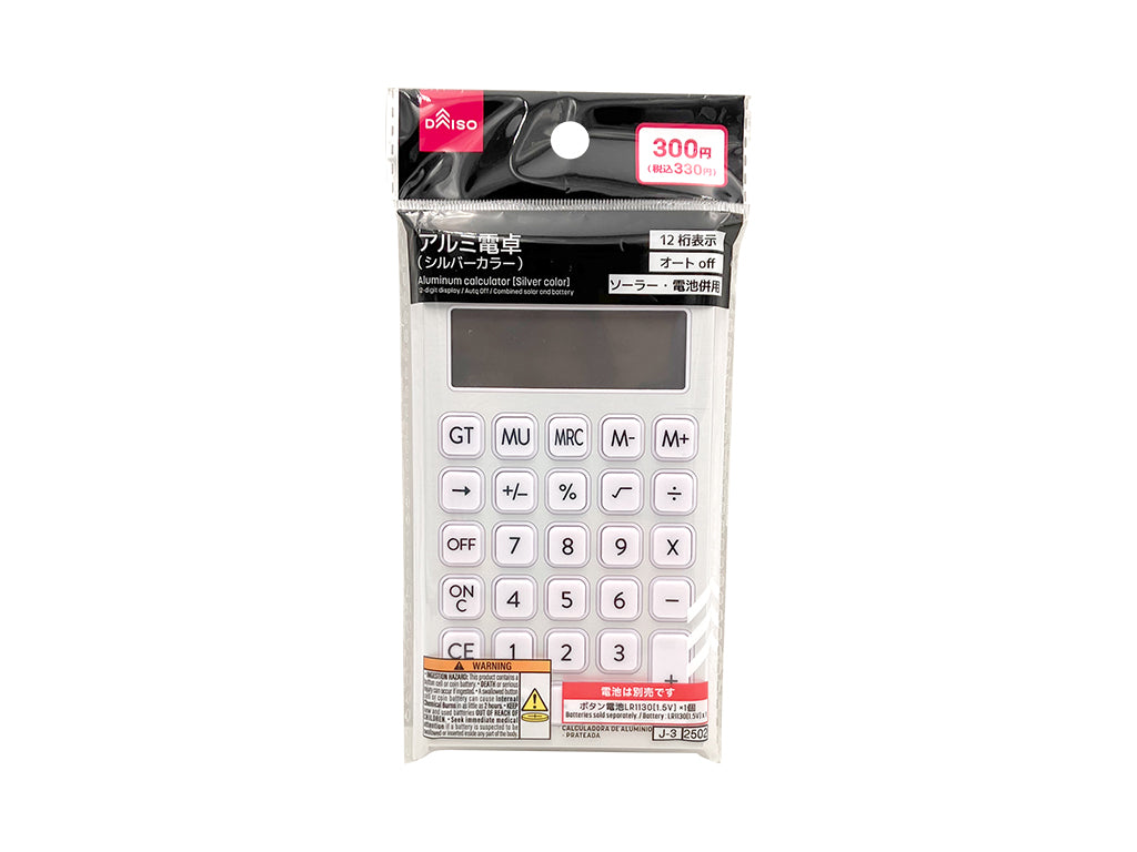 表面はアルミフレームを使い、高級感を出します。12桁表示、オートoff、ソーラー・電池併用