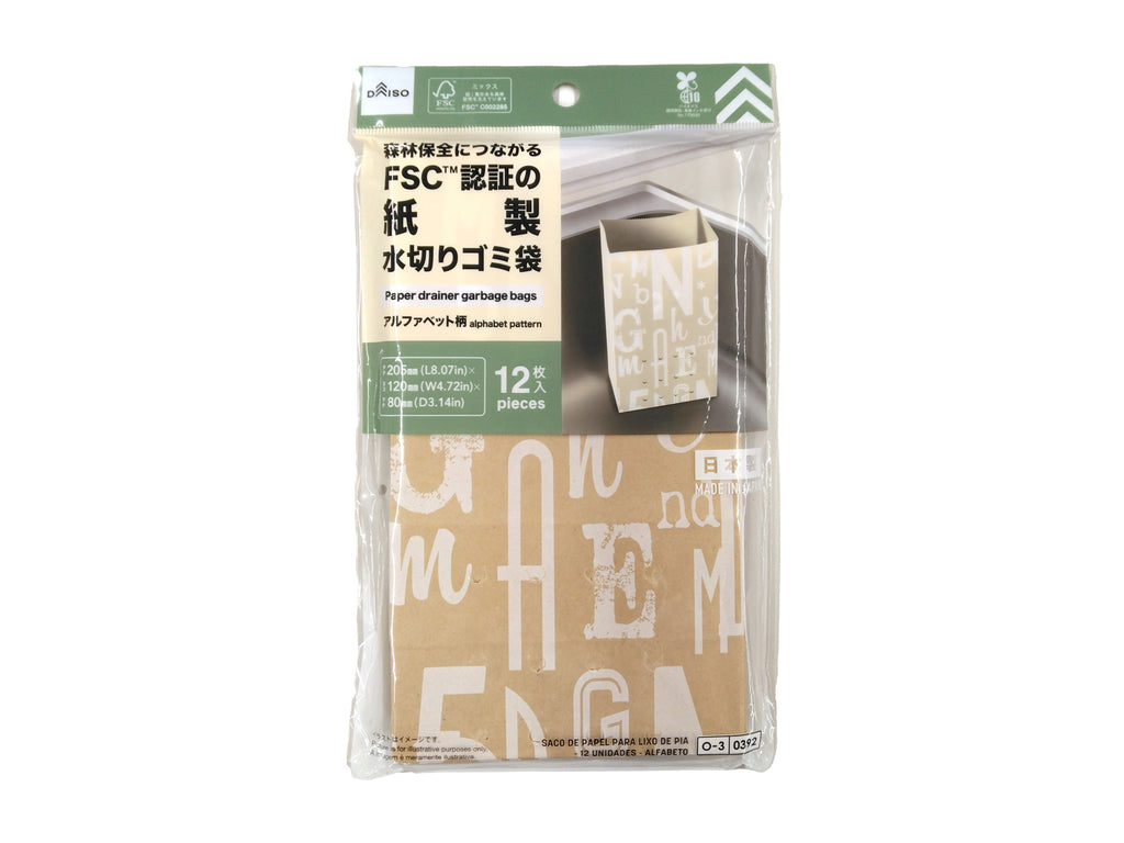 三角コーナー不要 縦205mm×横120mm×底マチ80mm 三角コーナーがいらない自立型の水切りゴミ袋です。 水を絞る時に手が汚れにくいです。 耐水紙を使用しているから濡れても破れにくいです。袋を広げて、シンク内に置きます。 排水の穴は、開けずにそのまま使用してください。●乳幼児の手の届かない場所に保管してください。●直射日光・高温多湿の場所を避けて、保管してください。排水用の穴は開けずにそのまま使用してください。 耐水紙を使用していますが、長時間水につけたり、熱いものを大量に流すと紙が弱くなります。●カレーなどの粘度の高い食品はあらかじめ水で薄めて流してください。●強く引っ張ったり、尖ったものを入れたりしないでください。●熱湯や熱い油を流さないでください。●火や熱源のそばに置かないでください。●本来の用途以外に使用しないでください。