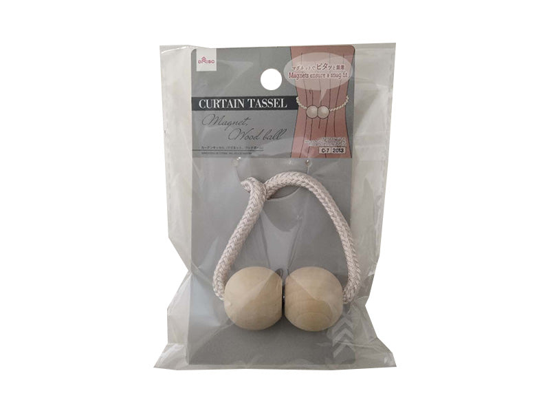 ●カーテンをまとめる際は、ひもをふさかけにかけてカーテンに巻きつけ、装飾部分についている双方のマグネットでとめてください。