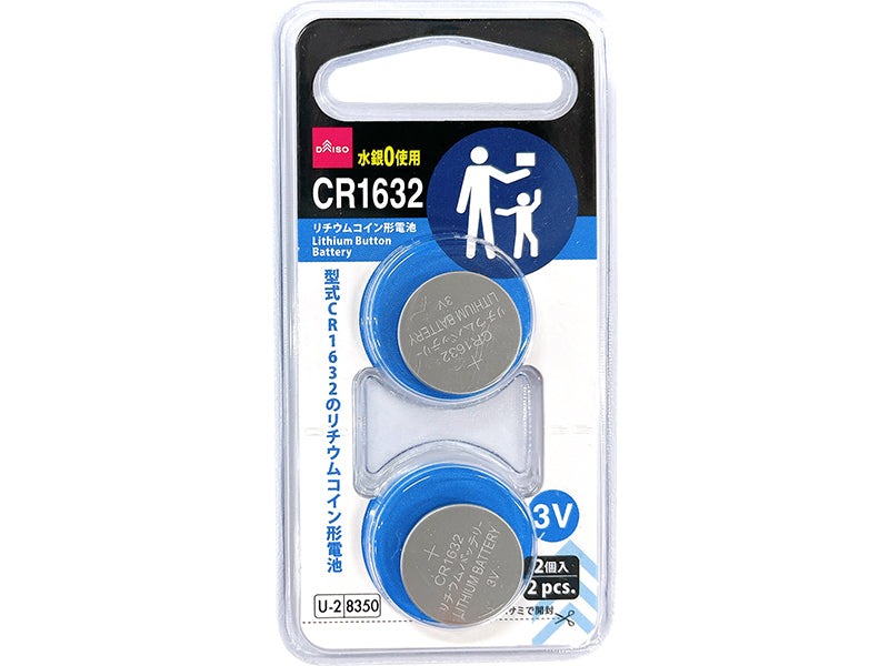 型式CR1632のリチウムコイン形電池電子機器などに 2個入 水銀0使用●他の電池や金属製の物と一緒に保管・携帯しない。保管・廃棄の際はテープ等を巻いて絶縁する。●お子様やペットの手の届かない場所に保管してください。取り扱い注意●誤った電池の使い方や、保存環境によって発熱、破裂、液漏れ、機器の故障、ケガの原因となりますので、必ず下記のことを守ってください。●ショート、分解、加熱、充電、プラス、マイナス逆接続、新旧、異種電池混用、火に入れる、水や液体で濡らす、強い衝撃、変形させる等は厳禁。●使い切った電池はすぐに機器から取り出してください。●開封時・開封後は切断面でケガをしないように注意する。●万一、電池からもれた液が目に入ったときはすぐに大量の水で洗い、医師に相談してください。皮膚や服に付いたときは水で洗ってください。●本来の用途以外に使用しないでください。●コイン電池は飲み込むと死に至る恐れがあるので、大変危険です。●万一飲み込んだ場合は、すぐに医師に相談してください。
