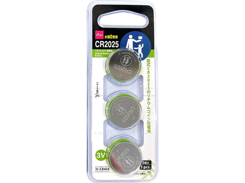 型式CR2025のリチウムコイン形電池電子機器などに 3個入 水銀0使用●他の電池や金属製の物と一緒に保管・携帯しない。保管・廃棄の際はテープ等を巻いて絶縁する。●お子様やペットの手の届かない場所に保管してください。取り扱い注意●誤った電池の使い方や、保存環境によって発熱、破裂、液漏れ、機器の故障、ケガの原因となりますので、必ず下記のことを守ってください。●ショート、分解、加熱、充電、プラス、マイナス逆接続、新旧、異種電池混用、火に入れる、水や液体で濡らす、強い衝撃、変形させる等は厳禁。●使い切った電池はすぐに機器から取り出してください。●開封時・開封後は切断面でケガをしないように注意する。●万一、電池からもれた液が目に入ったときはすぐに大量の水で洗い、医師に相談してください。皮膚や服に付いたときは水で洗ってください。●本来の用途以外に使用しないでください。●コイン電池は飲み込むと死に至る恐れがあるので、大変危険です。●万一飲み込んだ場合は、すぐに医師に相談してください。