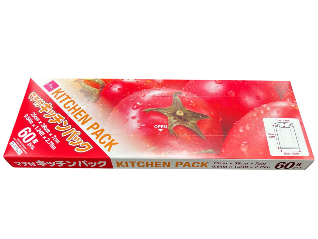 食品の保存に 食品の後始末に 冷蔵・冷凍食品の保管に 旅行・ドライブのお供に耐冷温度:-30℃ 寸法:横320(250+70)mm×縦380mm×厚み0.008mm 枚数:60枚●乳幼児の手の届かない場所に保管してください。●直射日光・高温の場所を避けて、保管してください。●湯せんをしないでください。●オーブン・電子レンジは使用しないでください。●尖ったものや鋭利なものを入れないでください。●液体を入れないでください。●火や熱源のそばに置かないでください。
