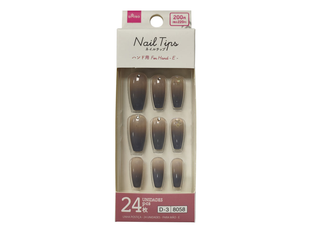 装着するだけで美しいシルエットが完成。接着用グルー・シールは付属していません。1.自爪の近いサイズのチップを選び、先端をファイル(別売)で整えます。 2.接着用グルーやシールをネイルチップ裏面につけます。 3.甘皮から1mm程度離し、上から軽く押さえつけるように貼ります。 オフ方法 装着したチップは無理に外さないでください。オフする際はお湯やリムーバー、ウッドスティックを使用してください。●お子様の手の届かない場所に保管してください。皮膚の弱い方や爪に異常がある方は使用しないでください。 チップが剥がれてきたり、隙間が生じた場合は外してください。チップの破損や自爪を傷める原因になります。 本品の製造には万全を期しておりますが、チップにバリが見られた時はファイル(別売)で整えてください。バリがある状態で使用するとケガの恐れがあります。●刺激・異常を感じたらただちに使用を中止、医師に相談●長時間使用しない●力仕事・激しい運動・就寝・乳幼児の世話の際ははずす