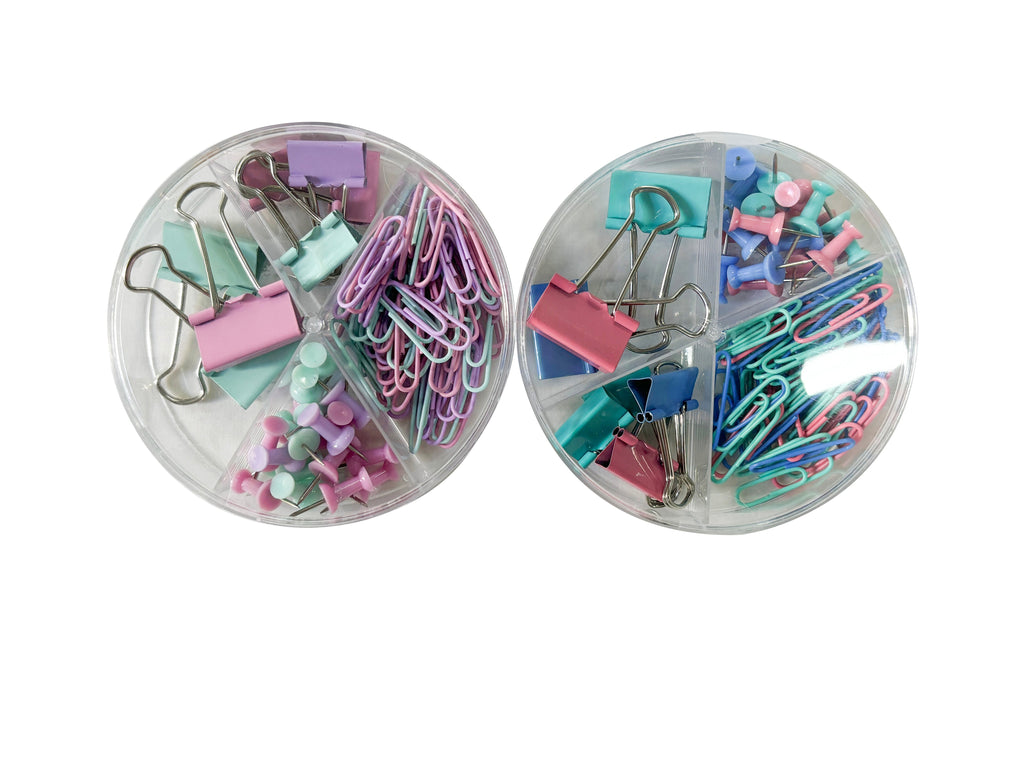 商品サイズ:ケース:10×10×2.7cm ダブルクリップ大:3.5×2.5×3cm ダブルクリップ小:2.8×1.9×2.3cm クリップ:2.8×0.8×0.15cm 画鋲:2.2×0.8×0.8cm