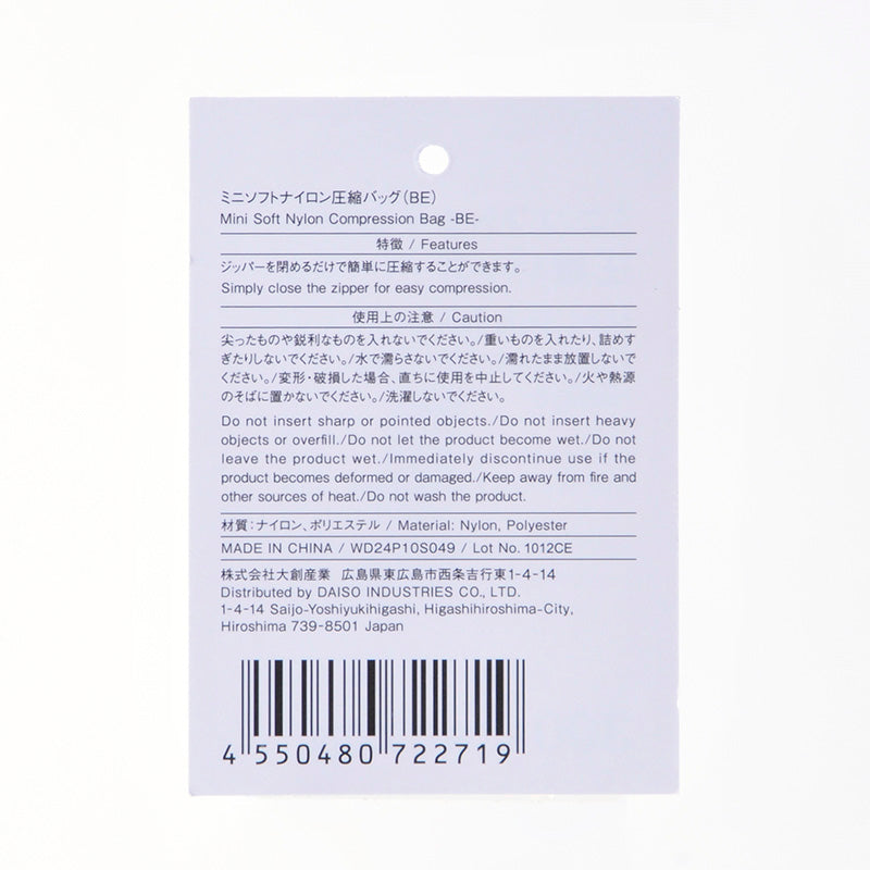 ジッパーを閉めるだけで簡単に圧縮することができます。●洗濯しないでください。●尖ったものや鋭利なものを入れないでください。●重いものを入れたり、詰めすぎたりしないでください。●水で濡らさないでください。●濡れたまま放置しないでください。●変形・破損した場合、直ちに使用を中止してください。●火や熱源のそばに置かないでください。