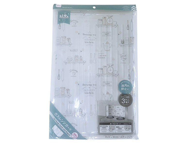 取り付け用磁石 3個入 お手入れラクラク!油汚れ防止に ※汚れを完全に防ぐものではありません。使い方2パターン!2口コンロを3面囲み 側面をしっかり2面囲み●イラストはイメージです。使用するコンロ部を囲んで、揚げ物など油料理の油の飛び散りを防止します。約45cm×80cm 左右の側面部を持ち、使用するコンロ部を囲みます。ガステーブルの側面を磁石で固定します。※安定している事を確認してから使用してください。※汚れたら早めに新しいものと取り替えてください。●乳幼児の手の届かない場所に保管してください。●高温多湿の場所を避けて、保管してください。炎が直接当たらないようにしてください。使用中や使用直後は本品に触れないでください。油やホコリなどの汚れが多量に付着すると、燃える恐れがあります。汚れたら早めに新しいものと取り替えてください。●本来の用途以外に使用しないでください。