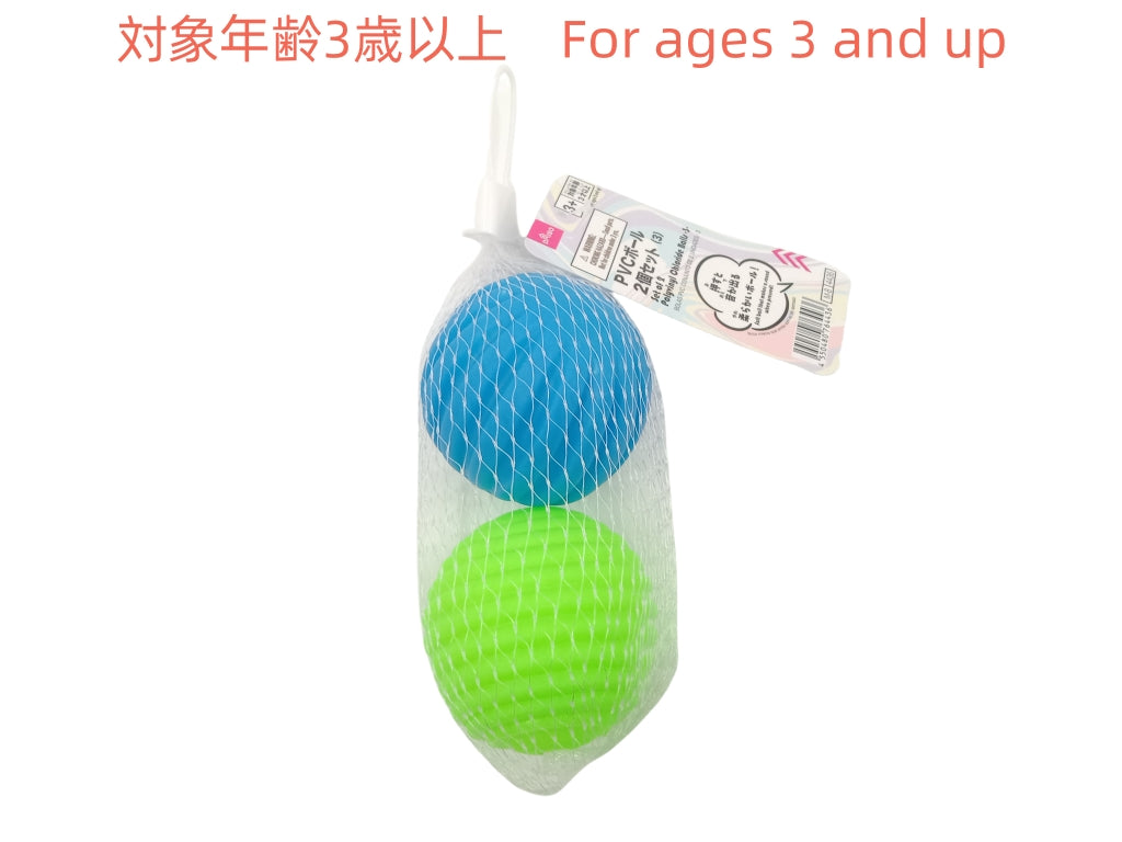 押すと音が出る柔らかいボール!対象年齢3才以上 セット内容:ボール×2 ●乳幼児の手の届かない場所に保管してください。●保護者の方へ、必ずお読みください。●本品を使用する際は、保護者監督のもと使用してください。●小部品があります。誤飲・窒息の危険がありますので、3才未満のお子様へは絶対に与えないでください。●変形・破損した場合、直ちに使用を中止してください。●分解や改造をしないでください。●火や熱源のそばに置かないでください。●本来の用途以外に使用しないでください。●長期間他の製品と密着させないでください。可塑剤の影響で変質、色移りの恐れがあります。
