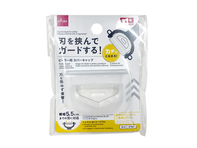 ピーラー用 カバーキャップ刃を挟んでガードする!カチッとはまる!刃を傷めず保管!横幅5.5cmまでの刃に対応お持ちのピーラーにご使用ください。●お持ちのピーラーにはめるだけで、簡単に刃をカバーできます。●イラストはイメージです。材質:ポリプロピレン●耐熱温度:120℃●カバー着脱の際、刃部には十分注意してください。●特殊な形状のピーラーには使用できません。●変形・破損した場合、直ちに使用を中止してください。●お子様やペットのいる場所で使用・保管しないでください。●火や熱源のそばに置かないでください。●たわし、又はクレンザーは使用しないでください。●本来の用途以外に使用しないでください。●直射日光・高温の場所を避けて、使用・保管してください。