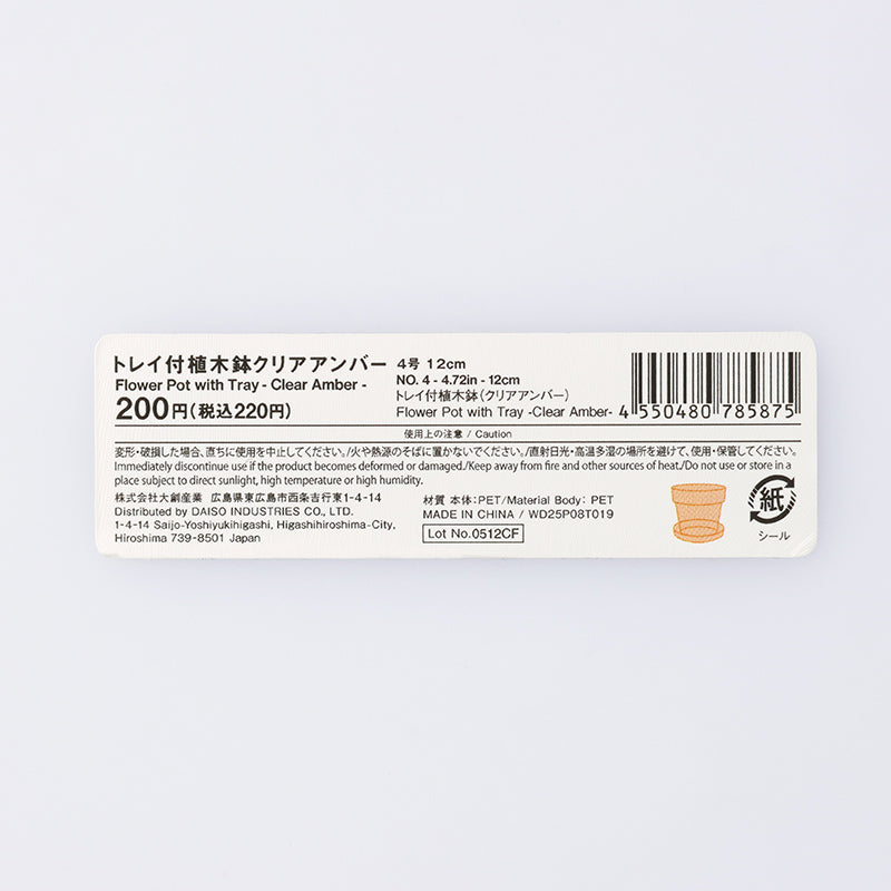 原産国:中国 材質:本体:PET 商品サイズ:鉢:12×12×10.5cm皿:12×12×2.5cm重さ 218g 内容量:1個入 種類:なし ●変形・破損した場合、直ちに使用を中止してください。●火や熱源のそばに置かないでください。●直射日光・高温多湿の場所を避けて、使用・保管してください。