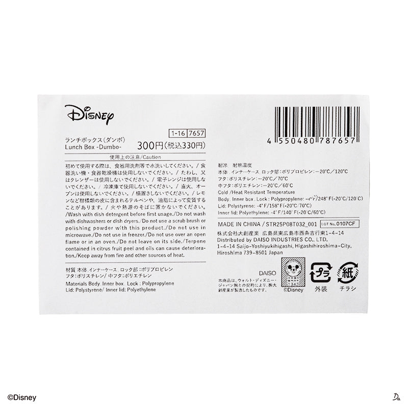 耐冷/耐熱温度 本体、イン ンナーケース、ロック部:ポリプロピレン:ー20℃/120℃ フタ:ポリスチレン:ー20℃/70℃ 中フタ:ポリエチレン:ー20℃/60℃●初めて使用する際は、食器用洗剤等で水洗いしてください。●食器洗い機・食器乾燥機は使用しないでください。●たわし、又はクレンザーは使用しないでください。●電子レンジは使用しないでください。●冷凍庫で使用しないでください。●直火、オーブンは使用しないでください。●横置きしないでください。●レモンなど柑橘類の皮に含まれるテルペンや、油脂によって変質することがあります。●火や熱源のそばに置かないでください。