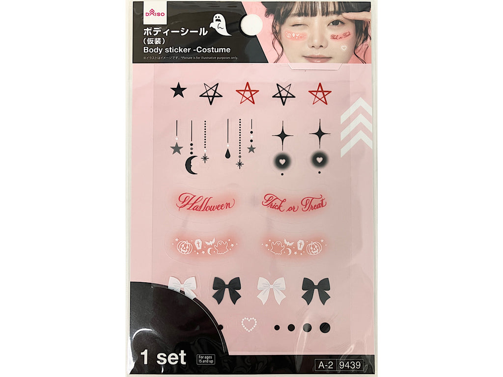 貼るだけの簡単なボディーシールです。 1 set For ages 15 and up●イラストはイメージです。無無し使用前に必ずパッチテストを行ってください。 シート左上の★マークのシールを、腕の内側等の目立たない部位に貼り、24時間、肌の過敏な方は48時間様子を確認してください。 肌に異常がないことを確かめてから使用してください。 赤く腫れる等、異常を感じた場合は使用しないでください。 ※油分や水気を除いてから使用してください。 剥がす際は、肌を傷めないようにゆっくりと端から剥がしてください。 粘着が強い場合は水で湿らせたコットンなどを当てて粘着を弱めてから剥がしてください。なし●直射日光・高温多湿の場所を避けて、保管してください。●乳幼児の手の届かない場所に保管してください。●水濡れや汗、摩擦などにより剥離する場合があります。 ●何度も貼りなおすと粘着力が弱くなり着かなくなります。 ●目に入らないように気をつけてください。 ●曲面に貼るとはがれやすくなります。●長時間使用しないでください。●肌の弱い方、アレルギー体質の方は使用しないでください。●お子様が使用する際は、保護者と一緒に使用してください。●肌に異常がある場合は、使用しないでください。●かぶれ、ただれ、赤み、発疹等、異常が現れたときは使用を中止し、医師に相談してください。●肌に異常を感じた場合は、直ちに使用を中止してください。●火や熱源のそばに置かないでください。●本来の用途以外に使用しないでください。
