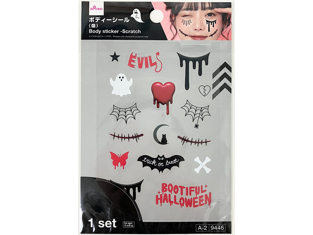 貼るだけの簡単なボディーシールです。 1 set For ages 15 and up●イラストはイメージです。無無し使用前に必ずパッチテストを行ってください。 シート左上の★マークのシールを、腕の内側等の目立たない部位に貼り、24時間、肌の過敏な方は48時間様子を確認してください。 肌に異常がないことを確かめてから使用してください。 赤く腫れる等、異常を感じた場合は使用しないでください。 ※油分や水気を除いてから使用してください。 剥がす際は、肌を傷めないようにゆっくりと端から剥がしてください。 粘着が強い場合は水で湿らせたコットンなどを当てて粘着を弱めてから剥がしてください。なし●直射日光・高温多湿の場所を避けて、保管してください。●乳幼児の手の届かない場所に保管してください。●水濡れや汗、摩擦などにより剥離する場合があります。 ●何度も貼りなおすと粘着力が弱くなり着かなくなります。 ●目に入らないように気をつけてください。 ●曲面に貼るとはがれやすくなります。●長時間使用しないでください。●肌の弱い方、アレルギー体質の方は使用しないでください。●お子様が使用する際は、保護者と一緒に使用してください。●肌に異常がある場合は、使用しないでください。●かぶれ、ただれ、赤み、発疹等、異常が現れたときは使用を中止し、医師に相談してください。●肌に異常を感じた場合は、直ちに使用を中止してください。●火や熱源のそばに置かないでください。●本来の用途以外に使用しないでください。