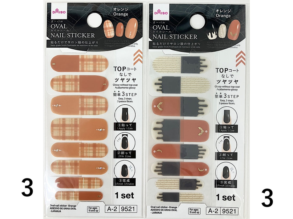 貼るだけでサロン級のしあがり簡単3StepTOPコートなしでツヤツヤ爪用やすりは付属しておりませんので、別途お買い求めください。1 setFor ages 15 and up●イラストはイメージです。●爪を爪磨き等で磨いてきれいに整えます。●①爪の幅に合うシールをシートからゆっくりとはがします。●②爪の甘皮ラインの1mm内側に合わせてまっすぐにのせます。●※シールはやわらかく、破れやすいです。注意してください。●③指の腹で押し付けるように両サイドを密着させます。●④爪用やすりで爪先の余分なシールを上から下へ一定方向でゆっくりと削ります。●仕上げにトップコートを塗るとより長持ちします。 ●※トップコートの種類によっては、変色する場合があります。●はがす際は、端からゆっくりめくります。蒸しタオルで温めたり、お湯に浸すとはがしやすくなります。 ①貼って ②削って ③完成 方向●直射日光・高温多湿の場所を避けて、保管してください。●乳幼児の手の届かない場所に保管してください。●長時間の水仕事や入浴をした場合はシールがはがれやすくなります。 ●爪に糊が残る場合があります。その際は、お湯やアルコールまたはリムーバーを使用すると簡単に除去できます。 ●飲み込まないように注意してください。 ●目に入れると危険です。●爪に異常のある場合は使用しないでください。●爪に異常を感じた場合は、直ちに使用を中止してください。●長時間使用しないでください。●火や熱源のそばに置かないでください。●本来の用途以外に使用しないでください。