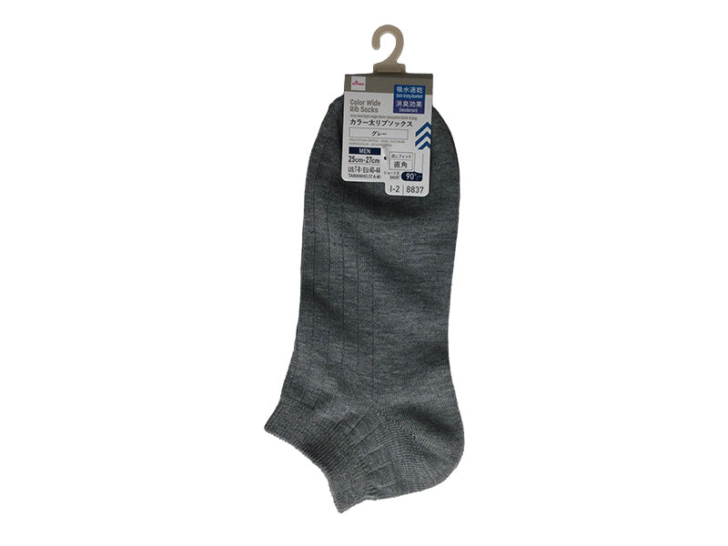 カラー太リブソックス(グレー、かかと直角、吸水速乾、消臭)