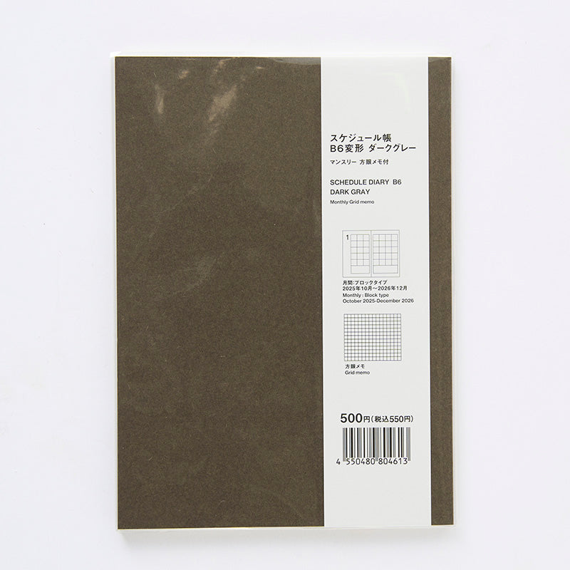 2026スケジュール帳(マンスリー、B6変形、ダークグレー)