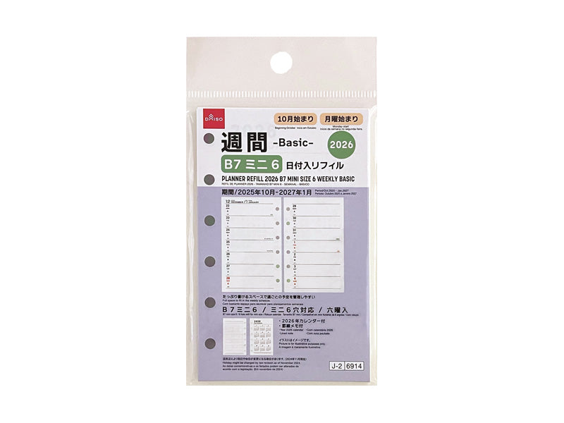 10月始まり 月曜始まり 期間/2025年10月-2027年1月 たっぷり書けるスペースで週ごとの予定を管理しやすい ミニ6穴対応 六曜入 2026年カレンダー付 罫線メモ付●イラストはイメージです。