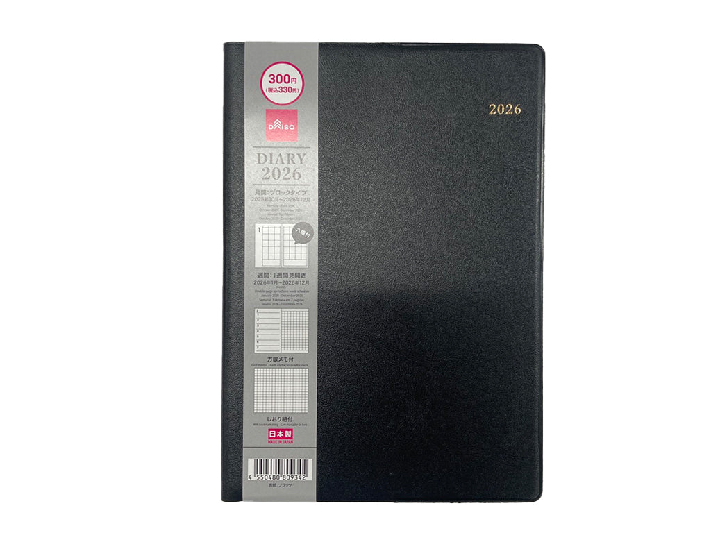 月間:ブロックタイプ 2025年10月〜2026年12月 週間:1週間見開き2026年1月〜2026年12月 方眼メモ付 しおり紐付