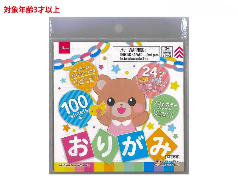 24色金色・銀色入り 100枚 おりかた2つ きりかた1つ付き 手をつないだこども さかな、かぶと ソフトカラーおりがみ対象年齢3歳以上おりがみ(15cm x15cm)100まい サイズ/15cmx15cm マリーゴールド・サンド・サルファーイエロー・シャモア・スカーレット・ミントグリーン・サーモンピンク・ローズピンク・キャメル・みずいろ・うすだいだい・きいろ・うすももいろ・クリーム・しろ・ミニョネット・ストローイエロー・ラベンダーモーブ・セラドングリーン・シャンパーニュ・ペールブルー・スカイブルー・きんいろ・ぎんいろ ※★の8色は各5枚、★の1色は各6枚、★の2色は各1枚入り。他13色は各4枚入り。手をつないだこどもの切り方 ①半分に切ったおりがみ。 ②半分に折る。 ③半分に折る。 ④半分に折る。 ⑤点線のようなしるしをつけてはさみで切る。 ⑥ひろげる できあがり かぶとの折り方 ①半分に折る。 ②点線のところで半分に折る。 ③上になった三角部分を折りあげる。 ④上から三分の一のところで折る。 ⑤下にある三角部分を一枚だけ点線の部分から折り上げる。 ⑥つづいて点線の部分のところで折り上げる。 ⑦さいごに残った三角を内側に折り入れる。 できあがり さかなの折り方 ①おりすじをつけ、たたむ ②点線のところでおりすじをつける。 ③ 折りたたむ。 ④うらがえす。 ⑤点線のところで折る。 ⑥半分に折る。 ⑦内側の折りを表側に引き出す。 (途中図) ⑧ひれ部分を折る。裏も同じように折る。尾ひれも折る。(中割り折り) 目やうろこを描いてできあがり保護者の方へ、必ずお読みください。 本品を使用する際は、保護者監督のもと使用してください。 ちよがみや袋を口の中に入れたり、顔を覆ったりしないでください。窒息する恐れがあります。 折りあがった作品で危険な遊びをしないでください。 指などを切らないように注意してください。 火や熱源のそばに置かないでください。 本来の用途以外に使用しないでください。