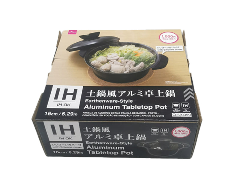 材質:表面加工 内面:ふっ素樹脂塗膜加工、外面:焼付け塗装(シリコン系塗料) 本体:アルミニウム合金、はり底:ステンレス鋼(クロム16%)、取っ手:フェノール樹脂、フタ:アルミニウム合金、カバー:シリコーンゴム