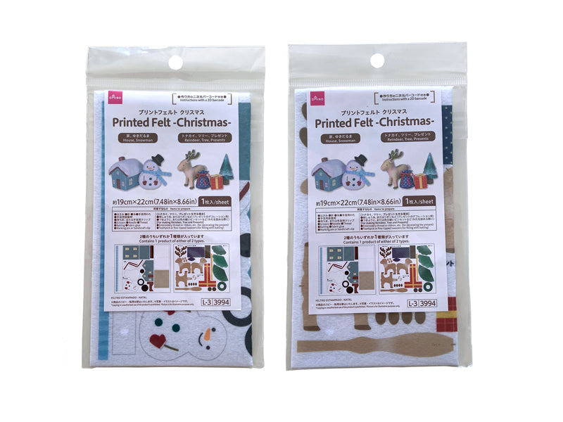 ・対象年齢15歳以上・作り方・プリントフェルト(家、ゆきだるま)作り方・できあがりサイズ(目安)・家 (約)横6cm×奥行6cm×縦6.7cm×1個・ゆきだるま (約)横4.7cm×奥行2.6cm×縦6.1cm×1個・帽子 (約)直径2.5cm×縦1.7cm×1個・用意するもの・はさみ・針・糸・手芸用わた・待ち針、または手芸用クリップ・手芸用接着剤・あると便利なもの・ピンセット(わたを詰める際に)・厚紙(家に使用すると、縫いやすく仕上がりも綺麗です)・プリントフェルト(トナカイ、ツリー、プレゼント)作り方・できあがりサイズ(目安)・トナカイ (約)横6.7cm×奥行2.8cm×縦8.2cm×1個・ツリー (約)直径3.5cm×縦7.5cm×1個・プレゼント【袋】 (約) 横3cm×奥行1.5cm×縦4cm×1個・プレゼント【箱】 (約) 横2.3cm×奥行2.3cm×縦3cm×1個・用意するもの・はさみ・針・糸・手芸用わた・待ち針、または手芸用クリップ・手芸用接着剤・刺しゅう糸、またはリボンなど(プレゼントのデコレーション用)・つまようじ、または先の細いピンセットなど(わたを詰める際に)・作り方・説明図では糸の色を目立たせて表現しています。