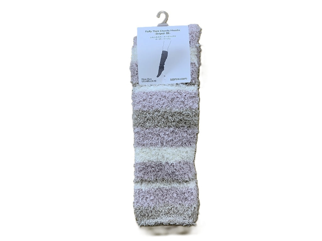 毛足の長い糸を使用し、ふわふわ感を増したモール素材のハイソックス