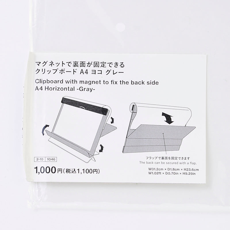 マグネットで裏面が固定できるクリップボード A4 ヨコ グレー フラップで裏面を固定できます最大収納枚数:30枚●直射日光・高温多湿の場所を避けて、保管してください。スチール面に貼る場合はコピー用紙は10枚以下にしてください。 マグネット部をパソコンなどの電子機器・時計・磁気カードなどの磁気の影響を受ける恐れのあるものに近づけないでください。 背面のフラップは開きすぎると破損する恐れがあります。 クリップで指を挟まないようにご注意ください。●変形・破損した場合、直ちに使用を中止してください。