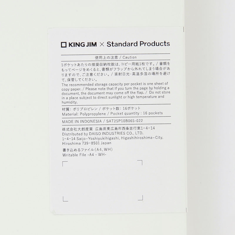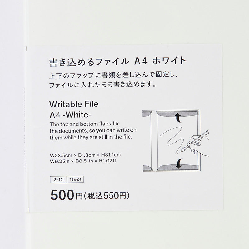 書き込めるファイル A4 ホワイト 上下のフラップに書類を差し込んで固定し、ファイルに入れたまま書き込めます。ポケット数:16ポケット●直射日光・高温多湿の場所を避けて、保管してください。1ポケットあたりの推奨収納枚数は、コピー用紙1枚です。 書類をもってページをめくると、書類がフラップから外れてしまう場合がありますので、ご注意ください。