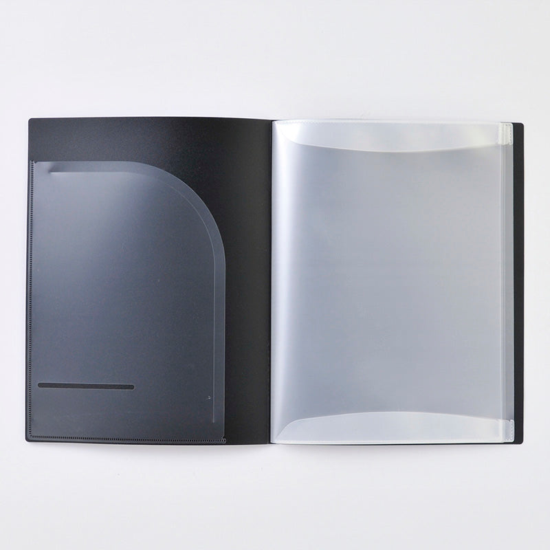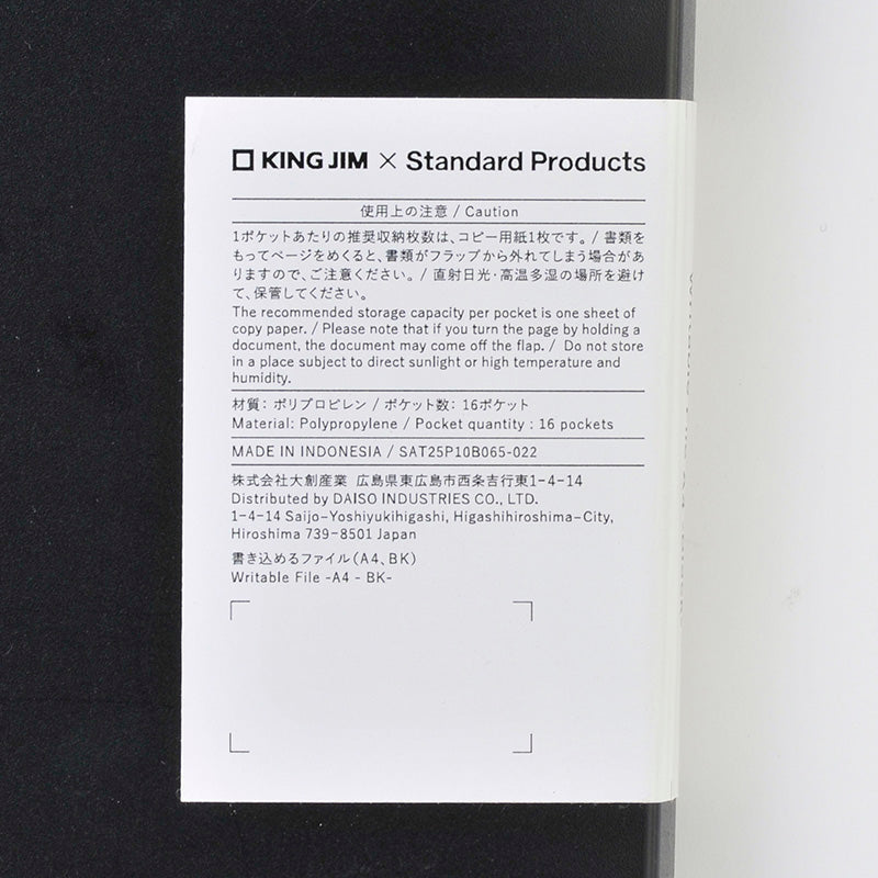 書き込めるファイル A4 ブラック 上下のフラップに書類を差し込んで固定し、ファイルに入れたまま書き込めます。ポケット数:16ポケット●直射日光・高温多湿の場所を避けて、保管してください。1ポケットあたりの推奨収納枚数は、コピー用紙1枚です。 書類をもってページをめくると、書類がフラップから外れてしまう場合がありますので、ご注意ください。