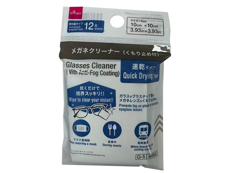 速乾タイプ ●拭くだけで視界スッキリ!! ●マスク着用時 ●食事中 ●電車乗降●ガラスやプラスチック製のメガネレンズのくもり止めに 個包装タイプ:12枚●メガネのくもりを防止します。 ●メガネの汚れを落とします。●使用する前にレンズに付着している、ホコリやゴミ等を落としてください。 ●袋からシートを取出して、乾かないうちにレンズを軽く拭いてください。●商品特性上、アルコール臭があります。●汚れによっては落ちないものもあります。 ●水洗いなどによりレンズが濡れたままの状態や乾いたティッシュペーパーでのふき取りの場合では、くもり止め成分が落ちてしまうおそれがあります。 ●べっ甲、宝石等の特殊なフレームには使用しないでください。 ●手や顔をふかないでください。 ●アルコール過敏症の方や肌の弱い方は、使用後に手をよく水で洗い流してください。 ●材質によっては変質のおそれがあるので、あらかじめ目立たないところで確認してから使用してください。 ●シートの汚れがひどい場合は、くり返し使用しないでください。 ●表面が傷ついたレンズ、コーティングが劣化したレンズには使用しないでください。 ●表面が鏡面加工、着色加工等の特殊加工のサングラスレンズには使用しないでください。 ●強くこすりすぎないでください。 ●乳幼児の手の届かない場所で使用・保管してください。 ●火や熱源のそばに置かないでください。 ●本来の用途以外に使用しないでください。