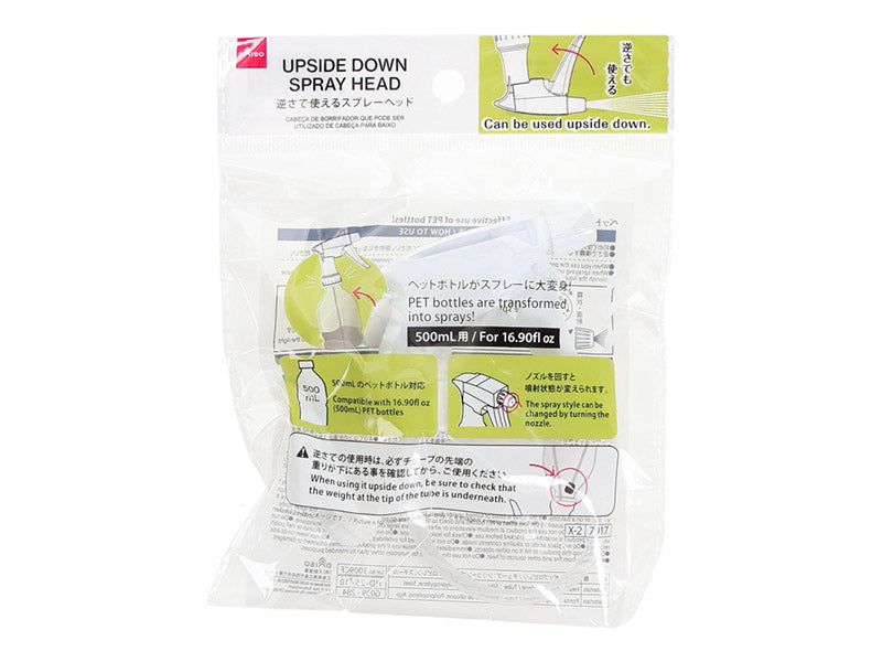 ペットボトルを有効利用!500mL用ペットボトルがスプレーに大変身!500mLのペットボトル対応 逆さでも使える逆さでの使用時は、必ずチューブの先端の重りが下にある事を確認してから、ご使用ください。●イラストはイメージです。●初めて使用する際は、液が出るまで数回押してください。●逆さで噴霧する時は充分に液を入れ、本器を立て数回噴霧してからご使用ください。空吹きになったら液を補充してください。ノズルを回すと噴射状態が変えられます。霧状・直射・ロックOPEN→TWIST【止まる】右に回す【霧状】左に回す【直射】さらに左に回す●よく噴霧しないときは噴霧口をはずしてゴミを取り除いてください。●直射日光・高温多湿の場所を避けて、保管してください。●お子様の手の届かない場所に保管してください。●ペットボトルの種類によっては、一部口径が合わないものがあります。●一部のつぶしやすいペットボトルでは、ご使用時にペットボトル本体にへこみが生じる場合があります。●ジョイント部分がしっかり閉まっているか確認してから使用してください。●濃度・粘度の高いもの、粒状のものが混入されている液体には使用しないでください。●水以外の液体を入れないでください。●40℃以上のお湯は、入れないでください。●車内やベランダなどに放置しないでください。●スプレーを傾けたり逆さにすると、スプレー本体の通気孔から液が漏れる場合があります。●ペットボトルと直射日光とのレンズ効果による火災に注意してください。レンズ効果を弱めるため、ペットボトルのラベルをはがさず使用してください。●飛行機などの高所や気圧の変化が大きい場所で使用しない●使用前に傷・ヒビ割れがあれば使用しない●使用前に液漏れがないか確認●シンナー・アルコール・除光液を入れない●酸性・アルカリ性のものを入れない●長時間中身を入れたままにしない●横置きしない●落としたり、ぶつけない●変形・破損時は使用中止●火や熱源のそばに置かない●用途外に使用しない