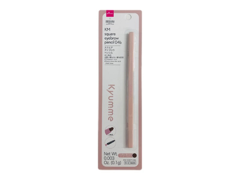 スクエアアイブロウペンシル #三角芯 #細い線も太い線も自在 コーヒーブラウン Net Wt. 0.003 Oz. 0.1g KM SQEP 04bアイブロウペンシル三角芯で細い線も太い線も自由自在のアイブロウペンシル。なめらかな描き心地で眉尻まですっきり美しいラインが描けます。スタイリッシュで転がりにくい四角容器。①芯を2mm程度繰り出します。 ②毛の流れにそって、眉毛を1本ずつ植え込むように描きます。 ③描いたラインをブラシで自然にぼかして仕上げてください。 ※ブラシはいつも清潔にしてご使用ください。 ●肌に異常が生じていないかよく注意して使う。肌に合わない時や、使用中、赤味、はれ、かゆみ、刺激、色抜け(白斑等)や黒ずみ等の異常が出た時、また、日光があたって同じような異常が出た時は、使用を中止して皮膚科医へ相談する。使い続けると症状が悪化する場合がある。●傷やはれもの、しっしん等、異常のある部位には使わない。●目に入らないよう注意。●落下等の衝撃に注意。●使用後はしっかり蓋をしめる。●乳幼児の手の届かないところに保管。●極端に高温又は低温の場所、直射日光のあたる場所には保管しない。