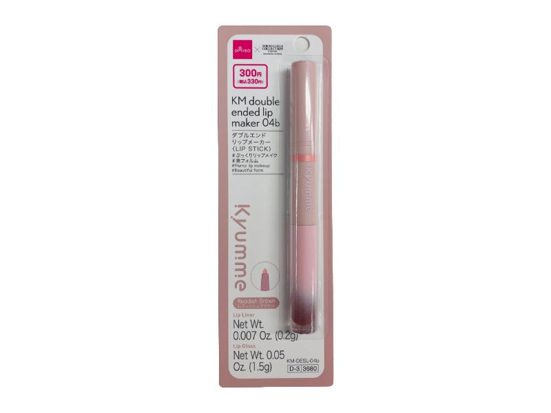 ダブルエンドリップメーカー #ぷっくりリップメイク #美フォルム レディッシュブラウン Lip Liner Net Wt. 0.007 Oz. 0.2g Lip Gloss Net Wt. 0.05 Oz. 1.5g KM DESL 04bリップライナー、リップグロスリップグロスとリップライナーが1本に。美しいリップメイクが叶います。チップにグロスを適量とり、唇に直接、または口紅の上から重ねるようにつけてください。 リップライナーは2mm程度を繰り出し、唇の輪郭にそってラインを描きます。 ぷっくり見せたいとき:リップライナーで唇の輪郭より少しオーバーめに縁取ります。 口角アップしたいとき:口角の延長線に短くリップライナーでラインを描きます。 人中短縮したいとき:上唇の山の部分にリップライナーを描き、指でぼかします。 ※繰り出しすぎると折れることがありますのでご注意ください。 ※ご使用後は必ず乾いたティッシュペーパー等でチップをきれいにふきとり、キャップをきちんとしめてください。 ●肌に異常が生じていないかよく注意して使う。肌に合わない時や、使用中、赤味、はれ、かゆみ、刺激等の異常が出た時、また、日光があたって同じような異常が出た時は、使用を中止して皮膚科医へ相談する。使い続けると症状が悪化する場合がある。●傷やはれもの、しっしん等、異常のある部位には使わない。●落下等の衝撃に注意。●使用後はしっかり蓋をしめる。●乳幼児の手の届かないところに保管。●極端に高温又は低温の場所、直射日光のあたる場所には保管しない。