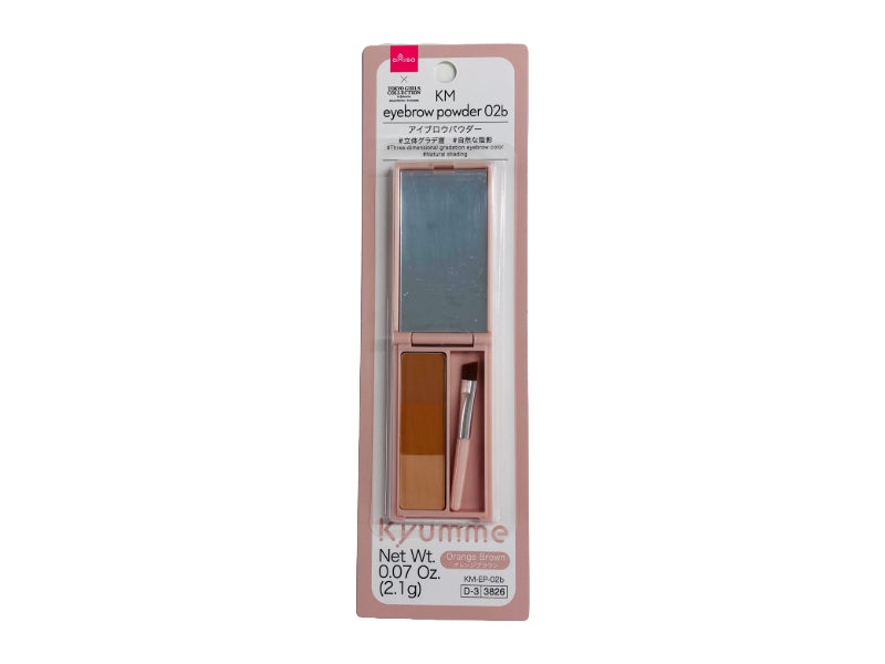 #立体グラデ眉 #自然な陰影 オレンジブラウン Net Wt. 0.07 Oz. 2.1g KM EP 02bアイブロウパウダー絶妙な濃淡カラーの組み合わせで、思い通りの仕上がりが実現。 立体的で自然な眉メイクが叶います。①ブラシにパウダーを適量とり、手の甲などで量を調節しながらご使用ください。 ②眉の中央から眉尻に向かってグラデーションを作ります。 眉頭はふんわり淡く仕上げると自然な印象になります。 ●肌に異常が生じていないかよく注意して使う。肌に合わない時や、使用中、赤味、はれ、かゆみ、刺激、色抜け(白斑等)や黒ずみ等の異常が出た時、また、日光があたって同じような異常が出た時は、使用を中止して皮膚科医へ相談する。使い続けると症状が悪化する場合がある。●傷やはれもの、しっしん等、異常のある部位には使わない。●目に入らないよう注意。●落下等の衝撃に注意。●使用後はしっかり蓋をしめる。●乳幼児の手の届かないところに保管。●極端に高温又は低温の場所、直射日光のあたる場所には保管しない。