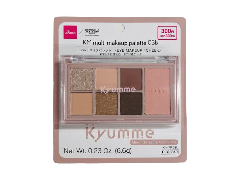 マルチメイクパレット #マルチに使える #アイ&チーク アーモンドピーチ Net Wt. 0.23 Oz. 6.6g KM 7P 03bアイメイクアップ、チークチーク、アイシャドウ、アイブロウなどがひとつにまとまった便利な7色のマルチパレット。 パレット1つで統一感のあるメイクが完成します。お手持ちのブラシやチップ、または指先に適量をとり、まぶたやチークなど使用したい箇所に軽くのばします。 ※持ち運びの際には十分注意ください。 ●肌に異常が生じていないかよく注意して使う。肌に合わない時や、使用中、赤味、はれ、かゆみ、刺激、色抜け(白斑等)や黒ずみ等の異常が出た時、また、日光があたって同じような異常が出た時は、使用を中止して皮膚科医へ相談する。使い続けると症状が悪化する場合がある。●傷やはれもの、しっしん等、異常のある部位には使わない。●目に入らないよう注意。●落下等の衝撃に注意。●使用後はしっかり蓋をしめる。●乳幼児の手の届かないところに保管。●極端に高温又は低温の場所、直射日光のあたる場所には保管しない。