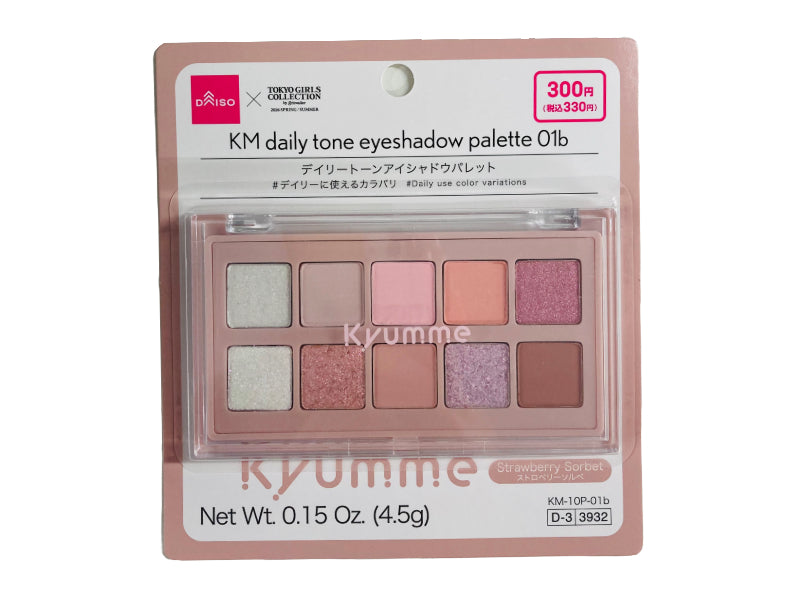 #デイリーに使えるカラバリ ストロベリーソルベ Net Wt. 0.15 Oz. 4.5g KM 10P 01bアイシャドウ様々な質感と使いやすくまとまったカラーバリエーションの10色パレット。日常使いにぴったりのアイシャドウです。お手持ちのブラシやチップ、または指先に適量をとり、まぶたに軽くのばします。 グリッターはチップなどで軽くとりながら、まぶたにポンポンとのせるようにご使用ください。 ※持ち運びの際には十分注意ください。 ●肌に異常が生じていないかよく注意して使う。肌に合わない時や、使用中、赤味、はれ、かゆみ、刺激、色抜け(白斑等)や黒ずみ等の異常が出た時、また、日光があたって同じような異常が出た時は、使用を中止して皮膚科医へ相談する。使い続けると症状が悪化する場合がある。●傷やはれもの、しっしん等、異常のある部位には使わない。●目に入らないよう注意。●落下等の衝撃に注意。●使用後はしっかり蓋をしめる。●乳幼児の手の届かないところに保管。●極端に高温又は低温の場所、直射日光のあたる場所には保管しない。