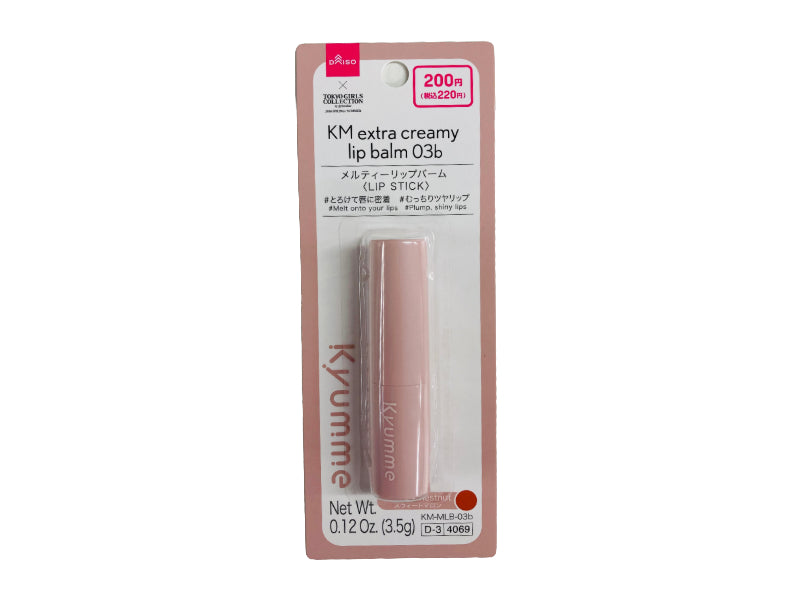 メルティーリップバーム #とろけて唇に密着 #むっちりツヤリップ スウィートマロン Net Wt. 0.12 Oz. 3.5g KM MLB 03bリップバーム唇の上でとろけて密着するなめらかな質感のリップバーム。少量を繰り出し、直接唇に塗布します。 ※繰り出しすぎると折れることがありますのでご注意ください。 ※落とす際は、ポイントメイクリムーバーをご使用ください。 ※使い終わったら、必ず繰り下げてからキャップを閉めてください。繰り上げたままキャップを閉めるとバームが潰れます。 ●肌に異常が生じていないかよく注意して使う。肌に合わない時や、使用中、赤味、はれ、かゆみ、刺激等の異常が出た時、また、日光があたって同じような異常が出た時は、使用を中止して皮膚科医へ相談する。使い続けると症状が悪化する場合がある。●傷やはれもの、しっしん等、異常のある部位には使わない。●落下等の衝撃に注意。●使用後はしっかり蓋をしめる。●乳幼児の手の届かないところに保管。●極端に高温又は低温の場所、直射日光のあたる場所には保管しない。