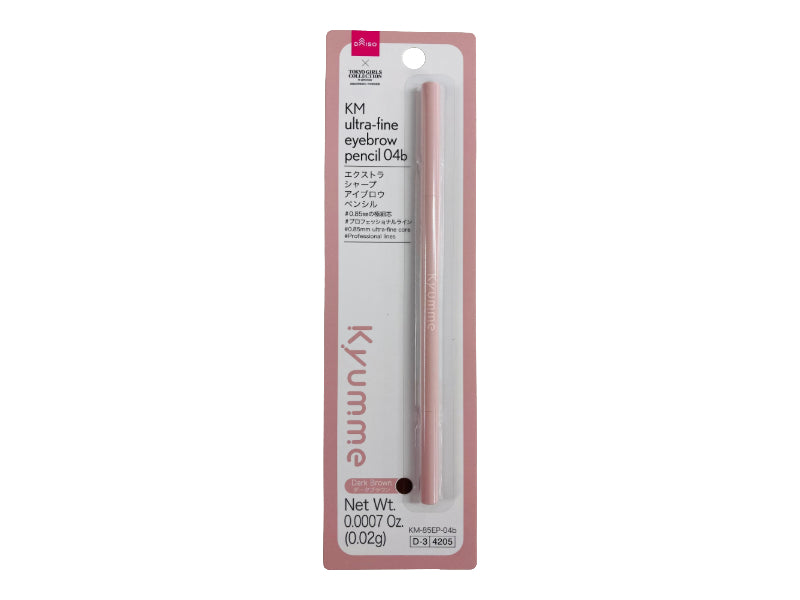 エクストラシャープアイブロウペンシル #0.85mmの極細芯 #プロフェッショナルライン ダークブラウン Net Wt. 0.0007 Oz. 0.02g KM 85EP 04bアイブロウペンシル0.85mmの極細芯で1本1本の毛流れが自然に描けるアイブロウペンシル。するするとなめらかな描き心地で眉尻まですっきり美しいラインが描けます。付属のスクリューブラシでなじませればより自然な眉に。①芯を2mm程度繰り出します。 ②毛の流れにそって、眉毛を1本ずつ植え込むように描きます。 ③描いたラインをブラシで自然にぼかして仕上げてください。 ※ペンシルは繰り出しすぎると折れることがありますのでご注意ください。 ●肌に異常が生じていないかよく注意して使う。肌に合わない時や、使用中、赤味、はれ、かゆみ、刺激、色抜け(白斑等)や黒ずみ等の異常が出た時、また、日光があたって同じような異常が出た時は、使用を中止して皮膚科医へ相談する。使い続けると症状が悪化する場合がある。●傷やはれもの、しっしん等、異常のある部位には使わない。●目に入らないよう注意。●落下等の衝撃に注意。●使用後はしっかり蓋をしめる。●乳幼児の手の届かないところに保管。●極端に高温又は低温の場所、直射日光のあたる場所には保管しない。