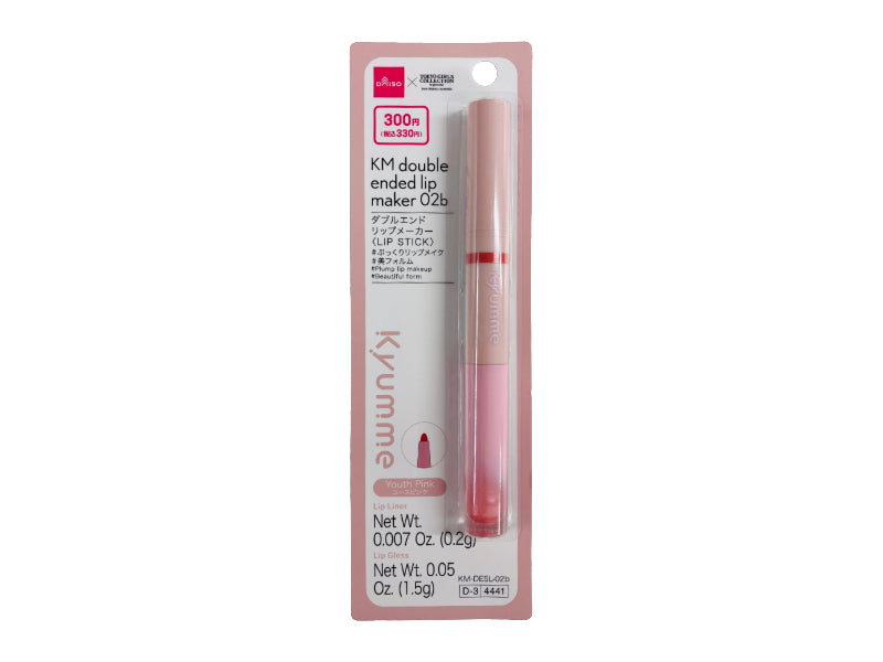 ダブルエンドリップメーカー #ぷっくりリップメイク #美フォルム ユースピンク Lip Liner Net Wt. 0.007 Oz. 0.2g Lip Gloss Net Wt. 0.05 Oz. 1.5g KM DESL 02bリップライナー、リップグロスリップグロスとリップライナーが1本に。美しいリップメイクが叶います。チップにグロスを適量とり、唇に直接、または口紅の上から重ねるようにつけてください。 リップライナーは2mm程度を繰り出し、唇の輪郭にそってラインを描きます。 ぷっくり見せたいとき:リップライナーで唇の輪郭より少しオーバーめに縁取ります。 口角アップしたいとき:口角の延長線に短くリップライナーでラインを描きます。 人中短縮したいとき:上唇の山の部分にリップライナーを描き、指でぼかします。 ※繰り出しすぎると折れることがありますのでご注意ください。 ※ご使用後は必ず乾いたティッシュペーパー等でチップをきれいにふきとり、キャップをきちんとしめてください。 ●肌に異常が生じていないかよく注意して使う。肌に合わない時や、使用中、赤味、はれ、かゆみ、刺激等の異常が出た時、また、日光があたって同じような異常が出た時は、使用を中止して皮膚科医へ相談する。使い続けると症状が悪化する場合がある。●傷やはれもの、 しっしん等、異常のある部位には使わない。●落下等の衝撃に注意。●使用後はしっかり蓋をしめる。●乳幼児の手の届かないところに保管。●極端に高温又は低温の場所、直射日光のあたる場所には保管しない。